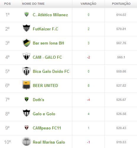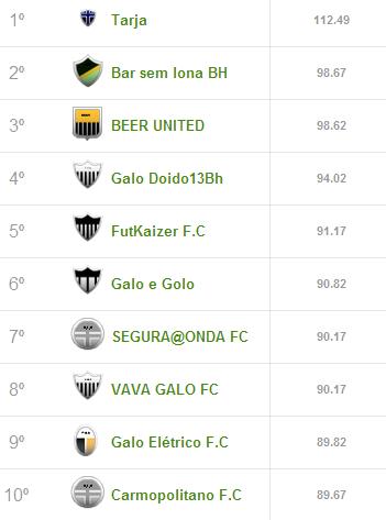 Classificação da rodada