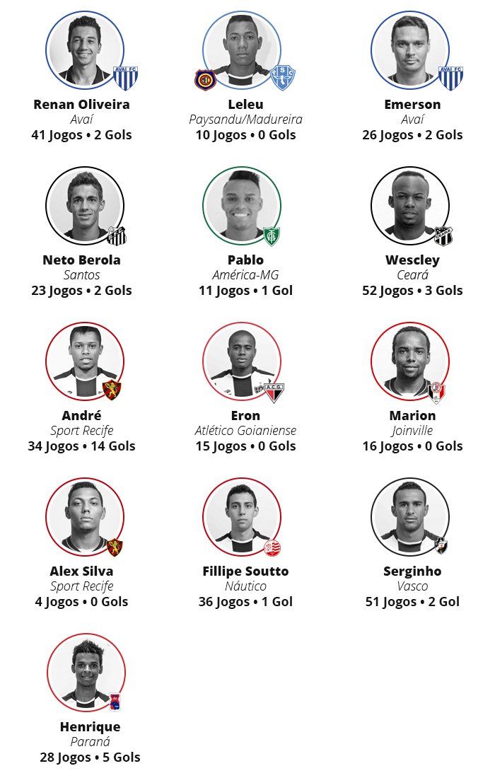 Na ilustração abaixo, você confere os números da temporada de cada jogador pelo clube que jogaram em 2015.