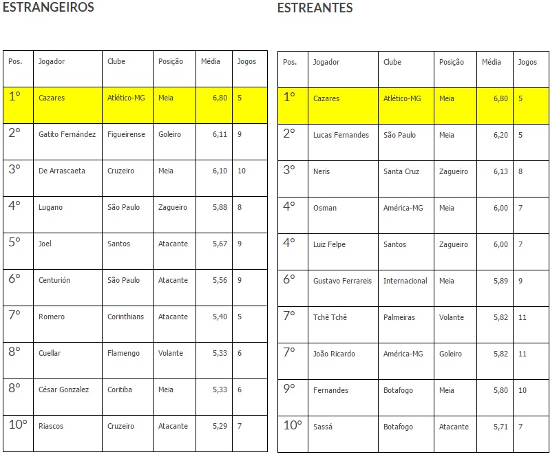 Bola de Ouro, Bola de Prata, Estrangeiro e estreante – Cazares domina disputa da Placar