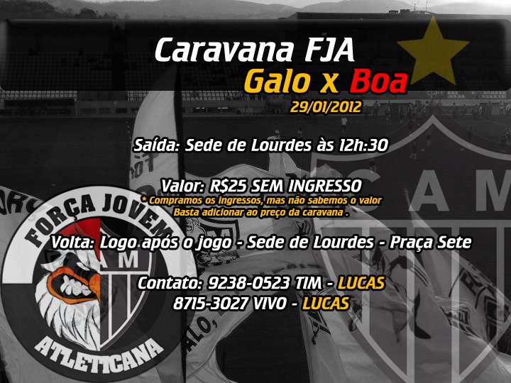 Caravana Atlético x Boa Por: Fael Lima 25/01/2012 - 00:44 ABRAÇO NAÇÃO! Fael Lima Twitter | Facebook | Orkut Youtube 1 | Youtube 2