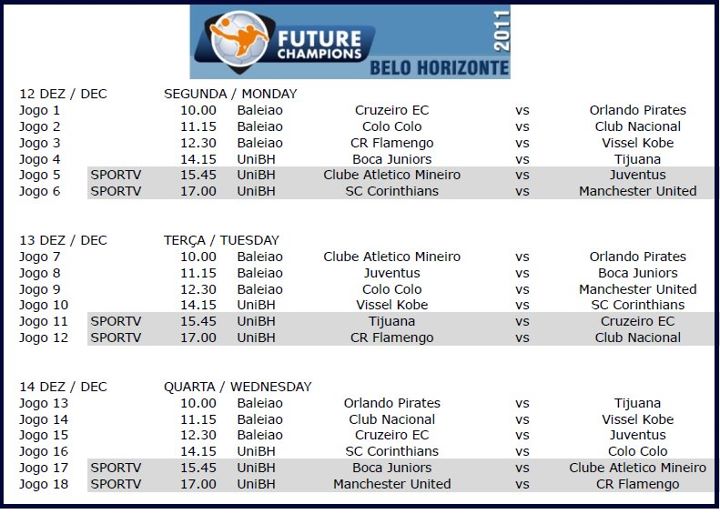A terceira edição da Future Champions começa nessa segunda-feira, com a participação de grandes times, como Atlético, Boca Juniors, Juventus, Manchester United e Colo Colo. O Galinho conquistou as duas primeiras edições, em Belo Horizonte, na África, e vem com força total para o tri.