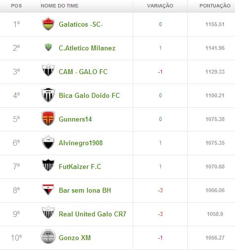 Pouca gente foi bem na rodada. Parece que a turma do Cam1sa Do2e combina quando todos devem fazer poucos pontos, inclusive o time do blog.