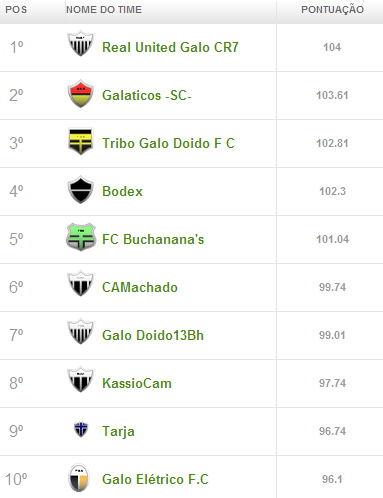Que pontuação é essa que vocês fizeram??? Todo mundo encheu a sacola e quem imaginou que poderia surgir entre os 10 da rodada, nem apareceu na foto. Antes de abrir o mercado, o Galáticos-SC me garantiu que retomaria a liderança, pelo twitter. E assim foi....