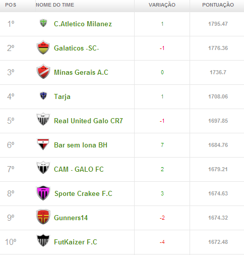 O Atlético Milanez e o Galáticos travam uma batalha dura, trocando de posição a cada rodada. Cada tropeço ou jogador mal escalado é uma chance para que o adversário abra vantagem. A turma de trás vem, como bons mineiros, comendo pelos cantinhos e de olho no título.