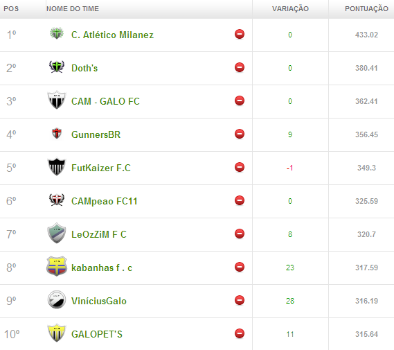 O C. Atlético Milanez tornou-se o time a ser batido na Liga do Cam1sa Do2e. O time mantém a regularidade e é líder por mais uma rodada do Campeonato. O Doth's também pisa fundo no acelerador, com o CAM- Galo FC na cola.