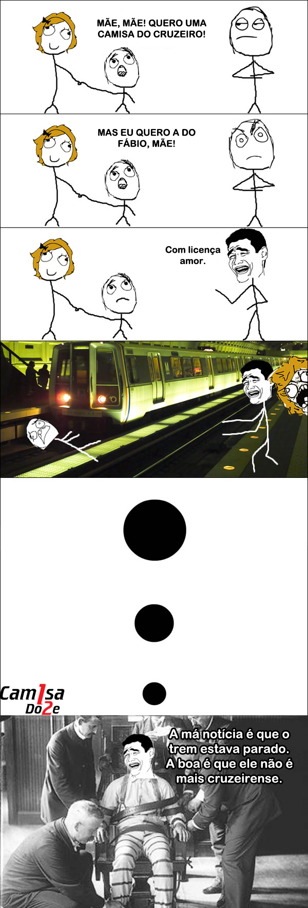 Psicologia infantil (para filhos cruzeirenses) Por: Fael Lima 12/01/2012 - 02:22 Nenhuma criança foi ferida no quadrinho. O trem continua bem. E o Atleticano só ficou um pouco elétrico.