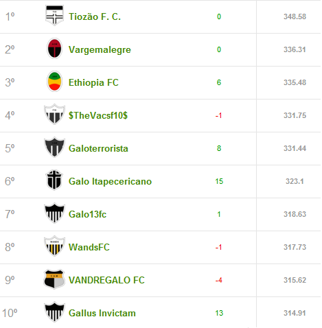 Passamos dos 700 membros na liga! E quanto mais gente, mais nome estranho no Top10. O primeiro da rodada eu nem sei como se pronuncia, mas o segundo, terceiro e quarto mereciam Galo de Prata pelos nomes escolhidos, haha.