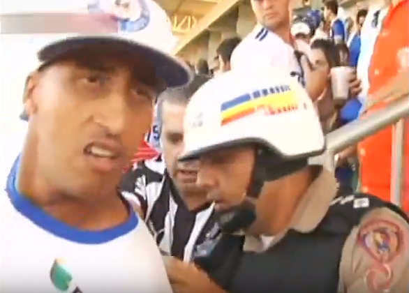 Ao perceber que eu filmava toda a confusão, o torcedor escondeu o rosto antes de tentar me agredir. Acertou apenas o celular, que quase caiu no outro setor. A rota de fuga não foi das melhores. Caiu nos braços da PM, foi recebido com um par de algemas e as portas da viatura abertas. No dia seguinte, mais corajoso longe da polícia, o torcedor, conhecido como Drops, através de mensagens enviadas no grupo da Poeira Azul, no Whatsapp, ironizava a prisão e comemorava o banho de cerveja que acertou os jornalistas e os sócios da URT.
